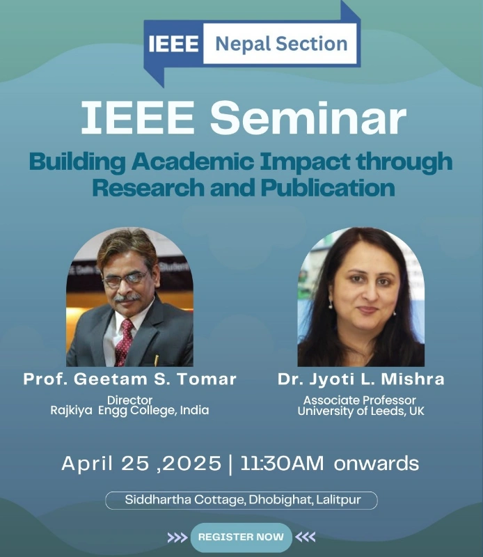 Join IEEE Nepal for a seminar on building academic impact through research and publication! Featuring expert speakers and strategies to elevate your academic profile.