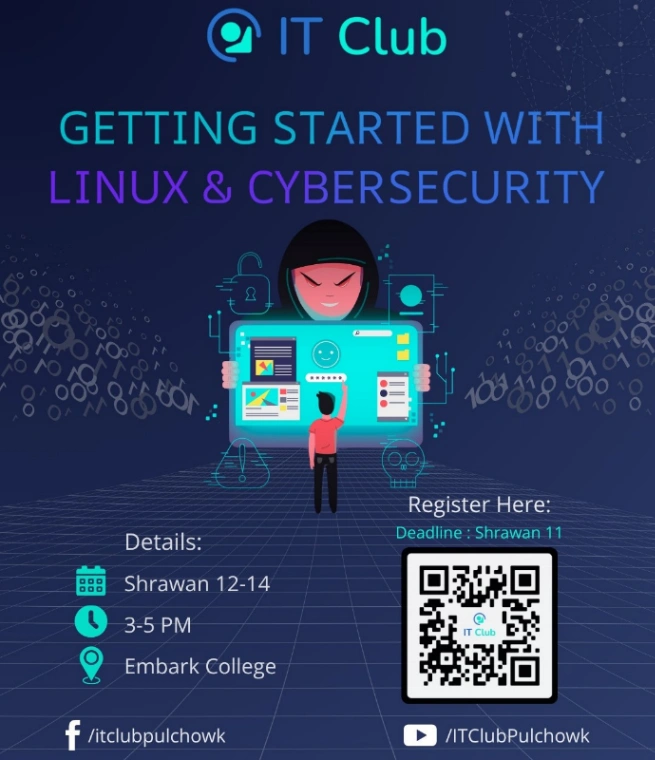 Join us for โGetting Started with Linux & Cybersecurityโ, a free hands-on workshop hosted by IT Club Pulchowk at Embark College. This event is designed to introduce beginners to the fundamentals of Linux and the exciting realm of cybersecurity โ from basic commands to understanding how digital threats work. Whether you're a tech enthusiast or planning a career in cyber defense, this is your perfect starting point.
