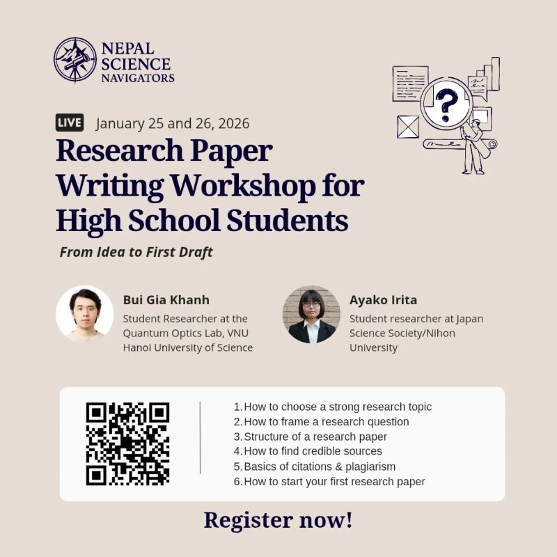 Nepal Science Navigators is hosting a FREE 2-Day Online Research Paper Writing Workshop specially designed for high school students (Grades 9–12). This event is led by the international community Nepal Science Navigators under Global Science Navigators.