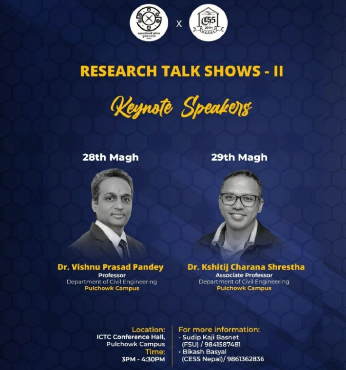 🎤 Research Talk Shows - II is back! Join us for an inspiring two-day event featuring expert insights from Pulchowk Campus professors on Civil Engineering research! 🚀🏗️