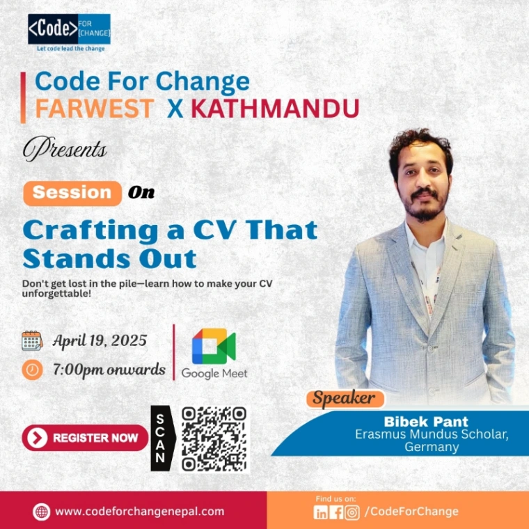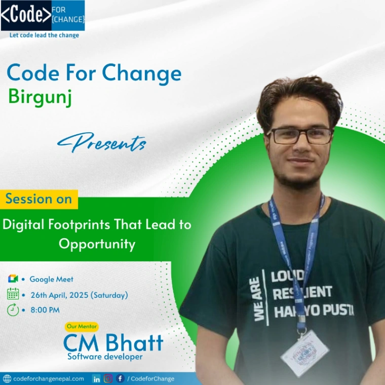 Join Code for Change Dang for a virtual session on Software Development & Career Guidance with Er. Sudhir Bhandari! Elevate your tech journey and gain valuable insights๐