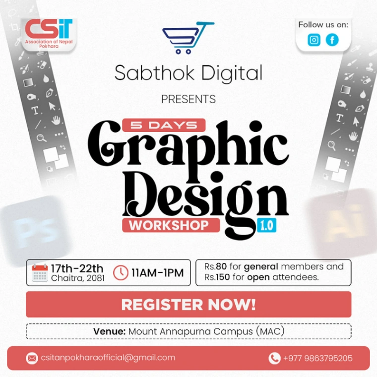 Enhance your design skills with CSITAN-Pokhara's 5-Day Graphic Design Workshop! Master essential tools and techniques to boost your career. Register now!