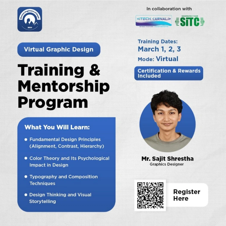 Join an exclusive 3-day virtual graphic design training and mentorship program led by industry expert Mr. Sajit Shrestha, organized by Women Engineers of Nepal.