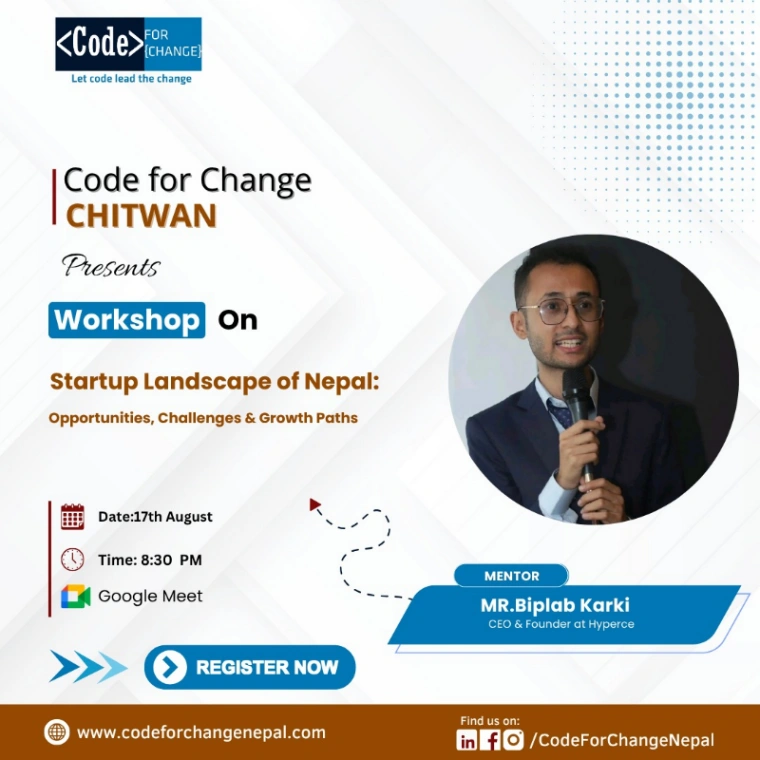 Join an exciting workshop to explore Nepal's startup landscape! Gain insights from Hyperce's CEO, Biplab Karki, and discover opportunities, challenges, and growth paths. Perfect for aspiring entrepreneurs!