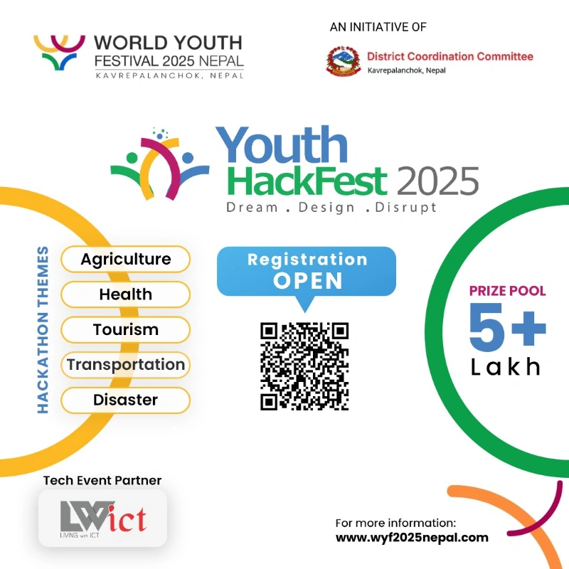 Join Nepal's biggest hackathon at Youth Hackfest 2025! Collaborate with experts, solve real-world challenges, and innovate for a Digital Nepal. Don't miss this opportunity to make an impact! 🌍🚀