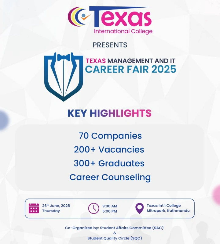 Texas International College presents the Texas Management and IT Career Fair 2025. Connect with 70+ companies, explore 200+ vacancies, and network with 300+ students.