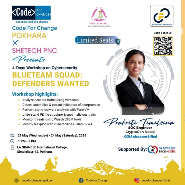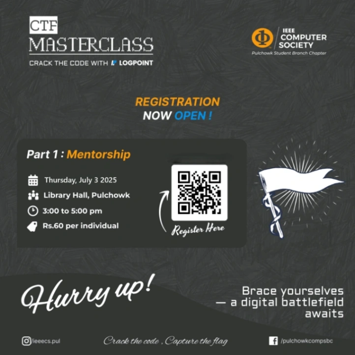 Crack codes, outsmart systems, and battle the brightest minds in Nepal’s fiercest CTF arena! Hack A Flag is your shot at glory and skills, with a prize pool of NRs. 70,000+!