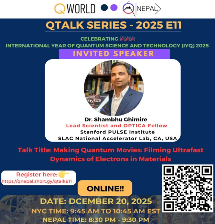 Discover quantum technology's hardware frontier in QNepal's QTalk Series E11. Dr. Shambhu Ghimire reveals 'quantum movies' filming ultrafast electron dynamics, crucial for future quantum science and devices. Join this online talk!