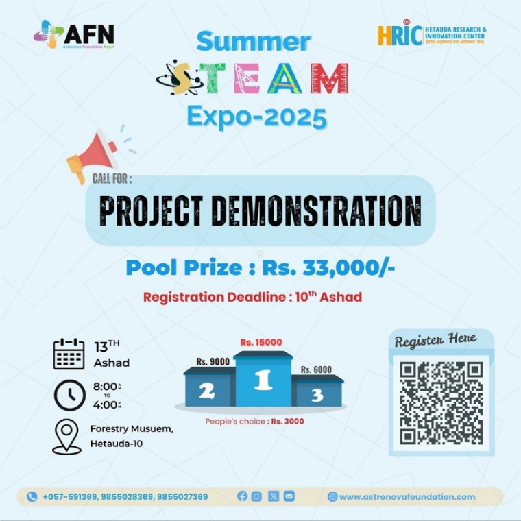 Unleash your creativity and represent Nepal on global platforms! Join STEAM Expo 2025 to showcase your innovative projects, compete for awards, and ignite your journey in science, tech and innovation.