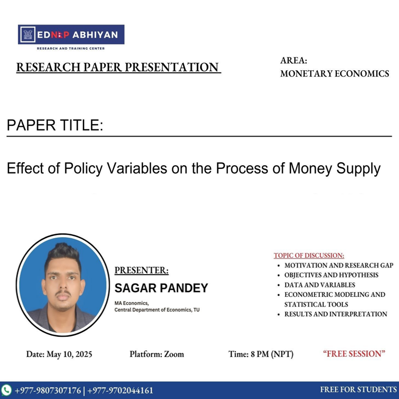 Join us for an insightful research paper presentation on the effect of policy variables on money supply, featuring Sangar Pandey. A must-attend event for economics enthusiasts!