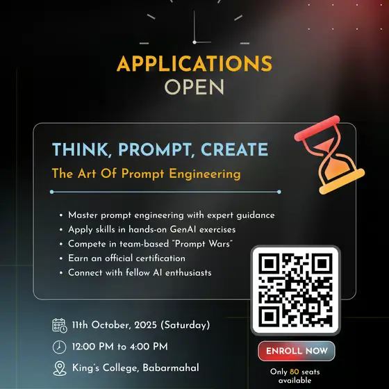 Dive into AI creativity at Prompt Wars! A workshop by Build Club x Hackademia. Master prompt engineering, compete in challenges, and earn certification. Unleash your AI potential!