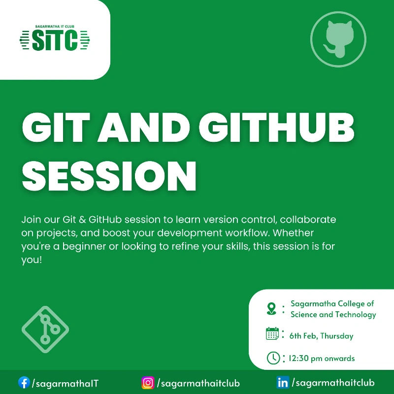 Join our Git & GitHub session to master version control, collaborate on projects, and elevate your development workflow. Perfect for beginners and experts alike!