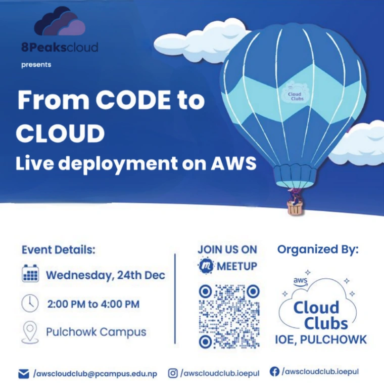 Join the AWS Cloud Club for a hands-on session on live deployment to AWS. Learn to deploy applications using EC2, RDS, Load Balancers, and Auto Scaling Groups. Perfect for students interested in cloud, DevOps, and backend development.