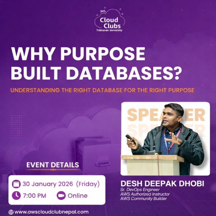 Unlock the power of specialized databases in modern cloud architecture! Join AWS Cloud Club at TU to understand why purpose-built databases are essential for performance and scalability.