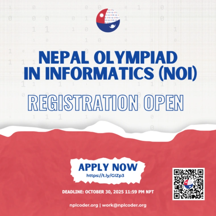 Join the first-ever Nepal Olympiad in Informatics (NOI) 2025, organized by NPLCoder! Represent Nepal in the world of competitive programming. Registration is now open!
