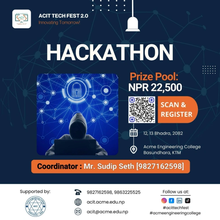 Join Hackathon NOVA 2026, Nepal's premier student-led tech innovation challenge. Transform ideas into impactful solutions over 60 hours and compete for exciting prizes.