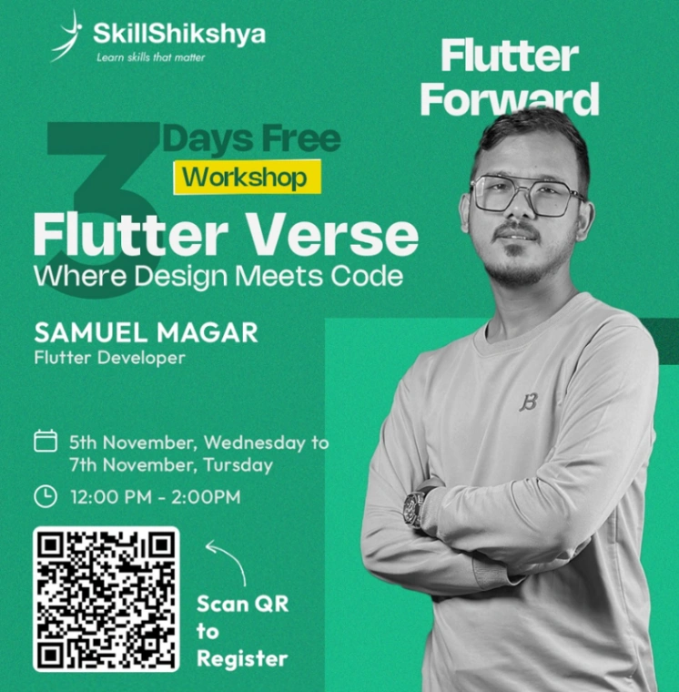 Join Flutter Verse, a free 3-day workshop to design, build, and deploy cross-platform apps with Samuel Magar. Gain hands-on experience and step into Flutter.