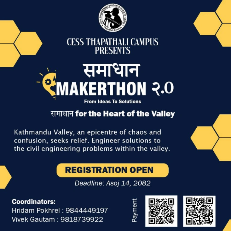 Join समाधान Makerthon 2.0, an innovative civil engineering competition in Kathmandu Valley. Teams collaborate to solve real-world problems through design and prototypes. Make an impact!