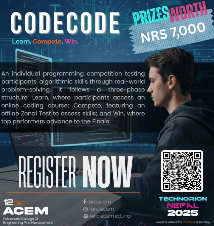 Join the biggest teen hackathon in Koshi Province, 24 hours of coding, creativity, teamwork, and innovation with huge rewards and incredible opportunities